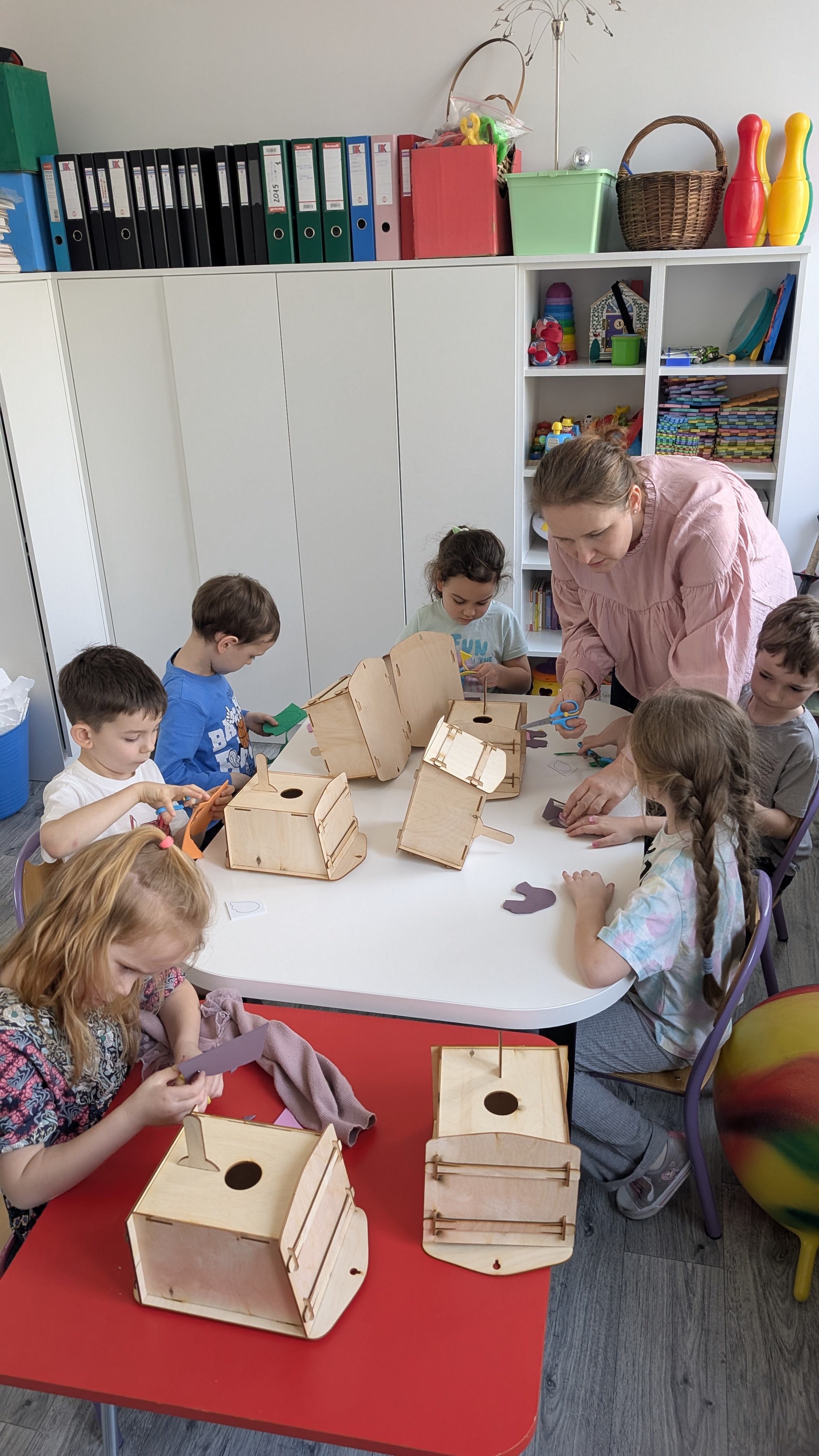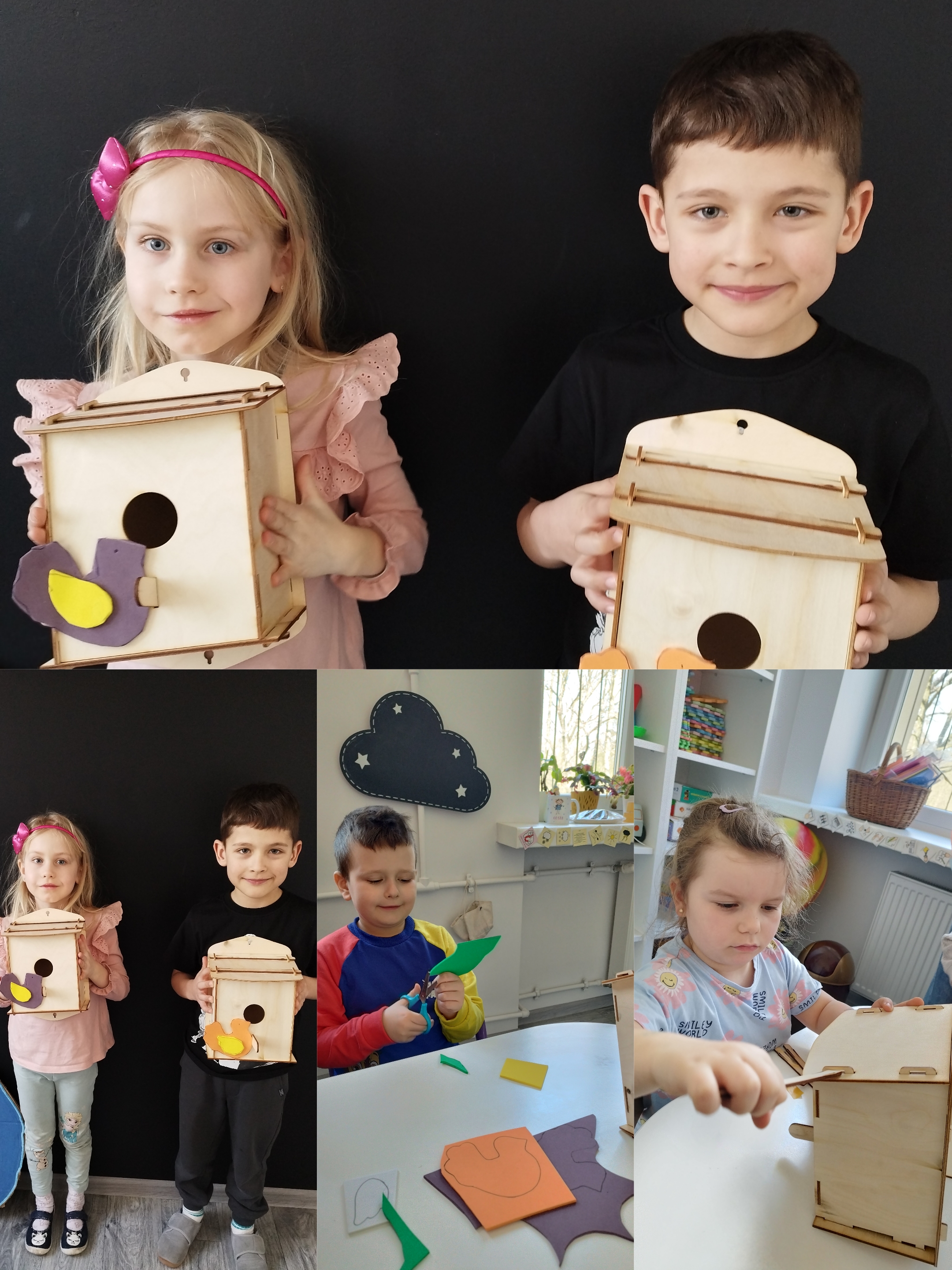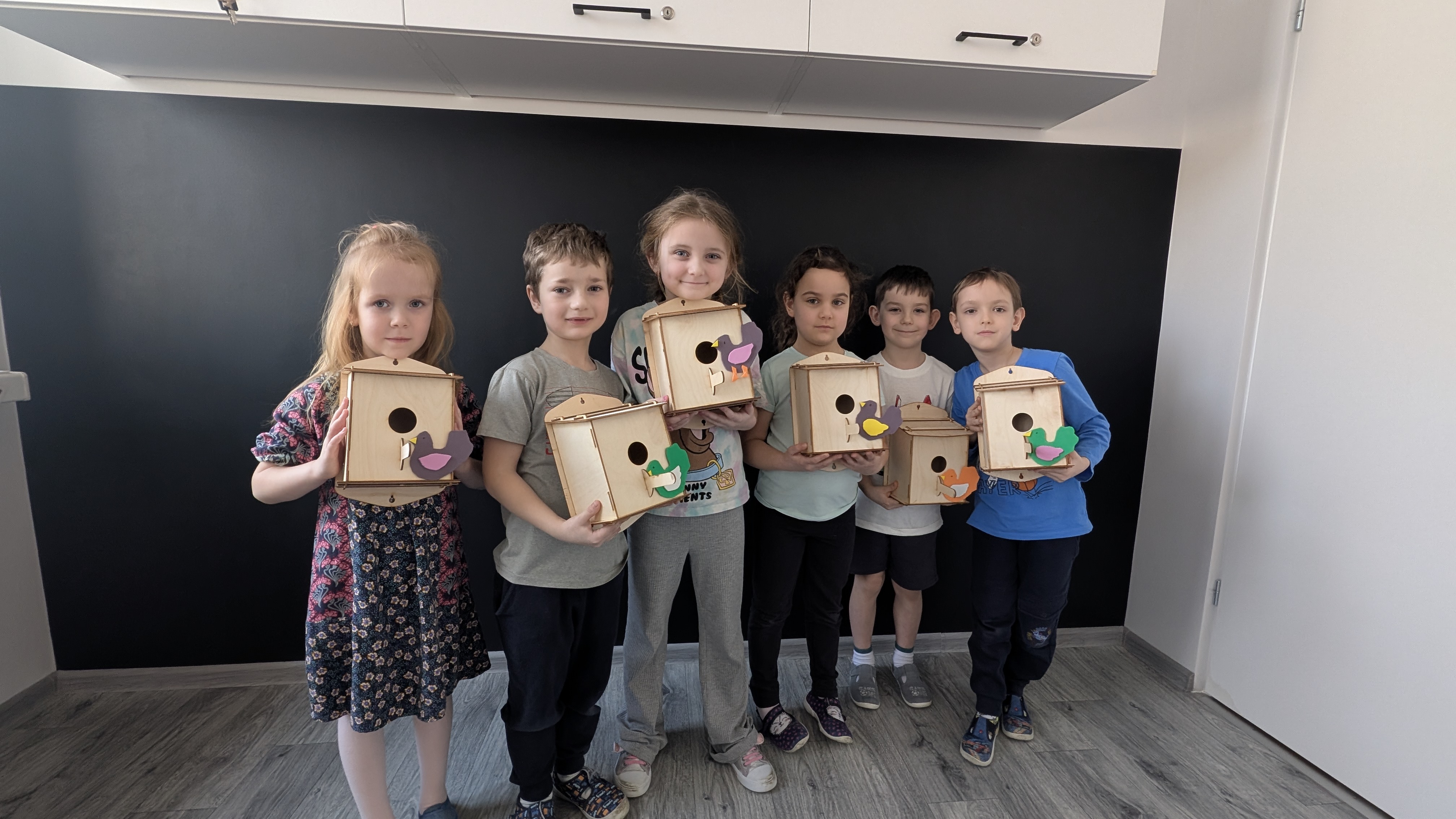 Na zakończenie zajęć dzieci z dumą oglądały wykonane budki i rozmawiały o tym, gdzie najlepiej je powiesić, aby mogły zamieszkać w nich ptaki. Podkreślono, że dzięki takim działaniom możemy pomagać przyrodzie i dbać o zwierzęta żyjące w naszym otoczeniu.