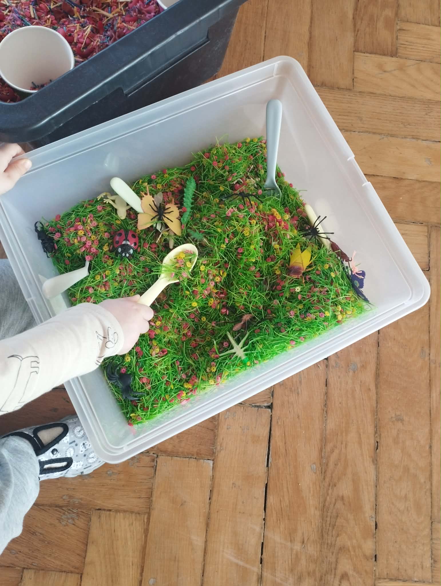 Czekały też sensoryczne łąki pełne wiosennych owadów, które dzieci odkrywały z ciekawością i zaangażowaniem. Atmosfera była spokojna, ciepła i pełna uśmiechu. Jak zwykle zadbaliśmy o wszystkie zmysły